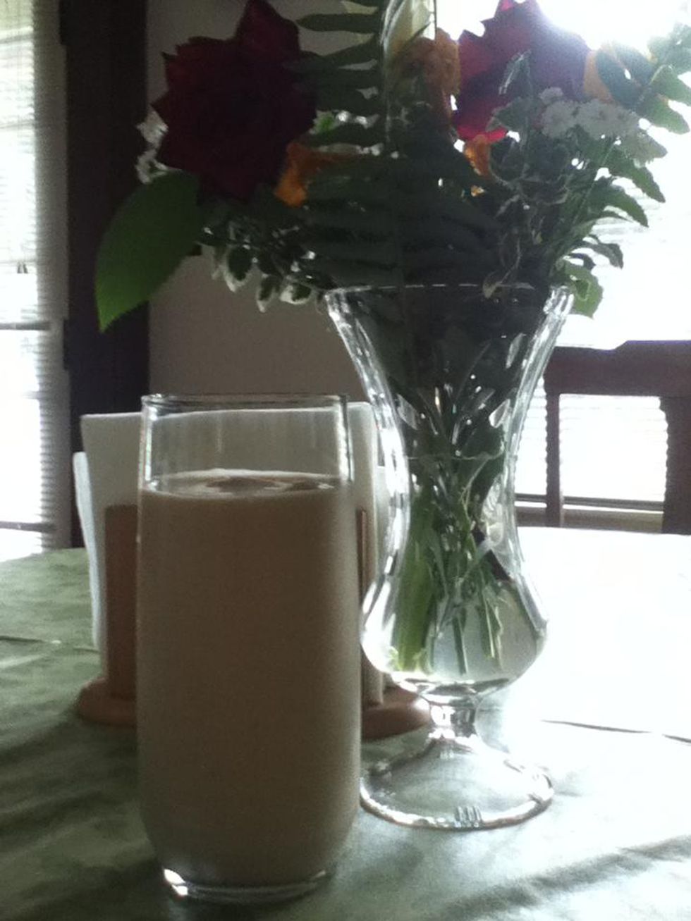 Mix all your ingredients together until you have a delightful creamy smoothie texture.