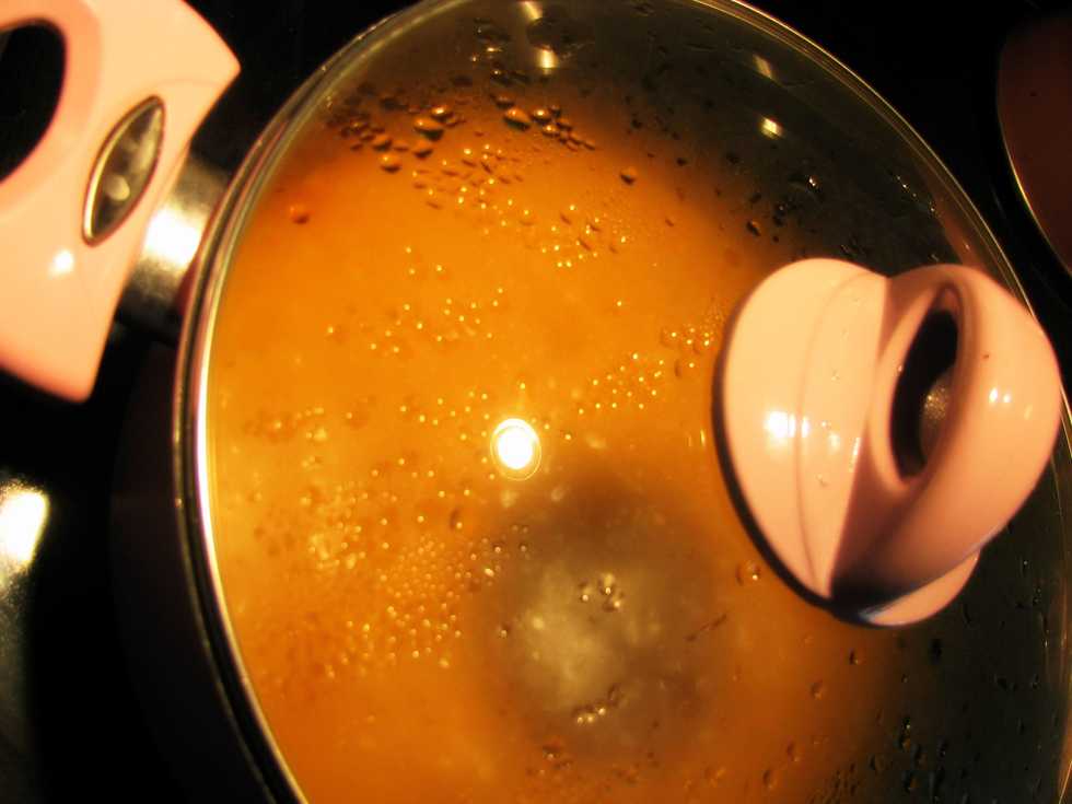 Bring to a boil, lower the heat and let simmer for about an hour. Add tea if needed.