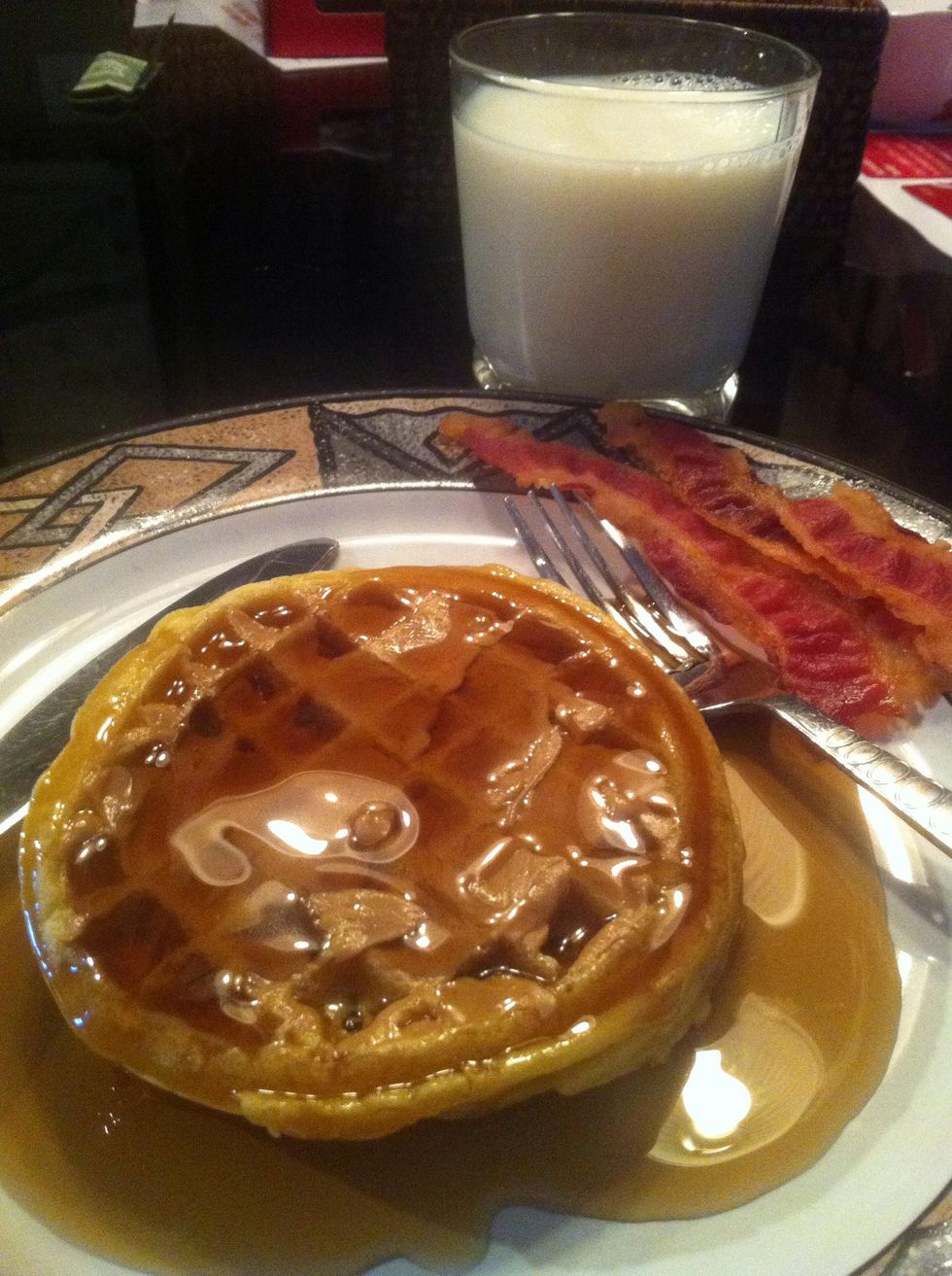 Cover in syrup, add bacon if desired and a nice cold glass of milk. Enjoy!!