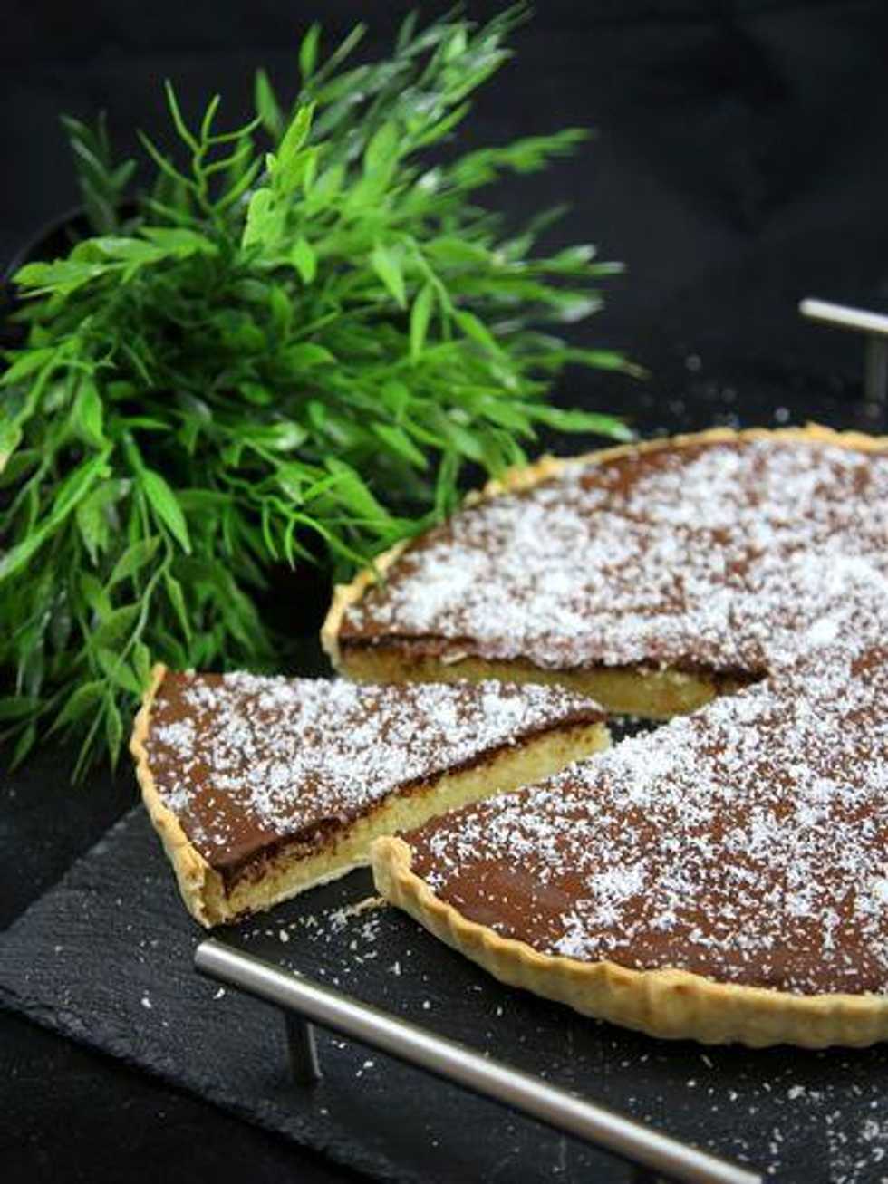 Mix coconut, sugar, butter and eggs. Pour the mixture on the shortcrust and cook for 30 minutes.