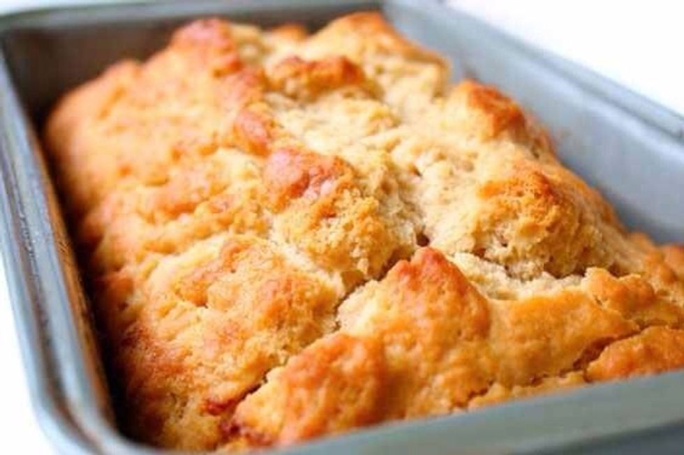 Bake for 45 minutes, remove from the oven and spread a half a cup of butter on top of each loaf, bake an additional 10 minutes.
