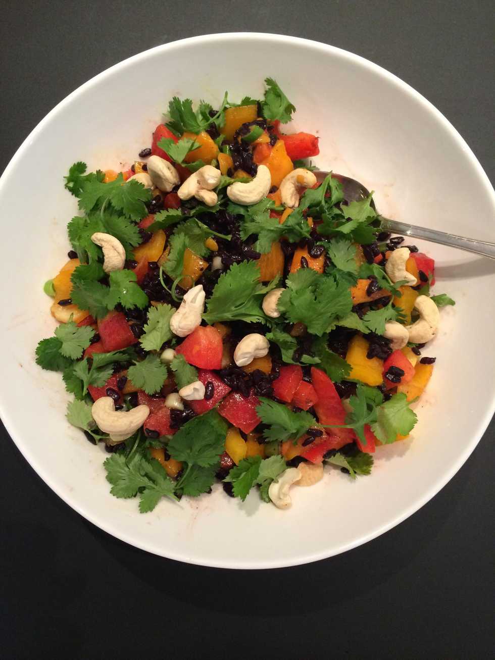 Proposed ingredients.. Yellow and red bell peppers, scallions coriander (while mango and cashews could b added to give it a thai aspect..optional)