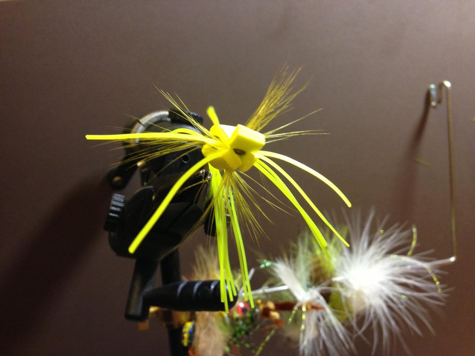 Leave top strip longer to achieve spitting action ala Gartside Gurgler. Cement finishing thread wraps and let dry. Go fish.
