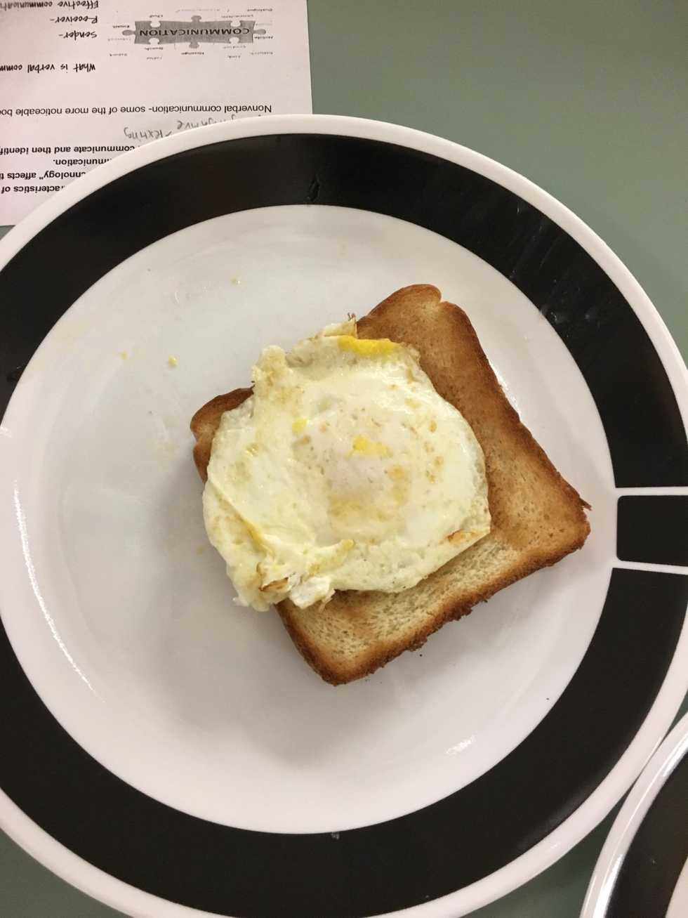 Make sure to watch the white part of the egg cook, so it doesn't burn. Once done, flip to the other side. *egg should not spend much time on this side