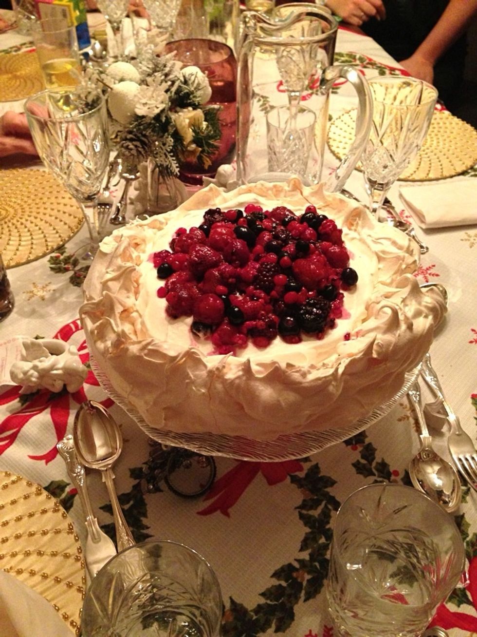 Add whipped cream to the centre of the pavlova after it has cooled.