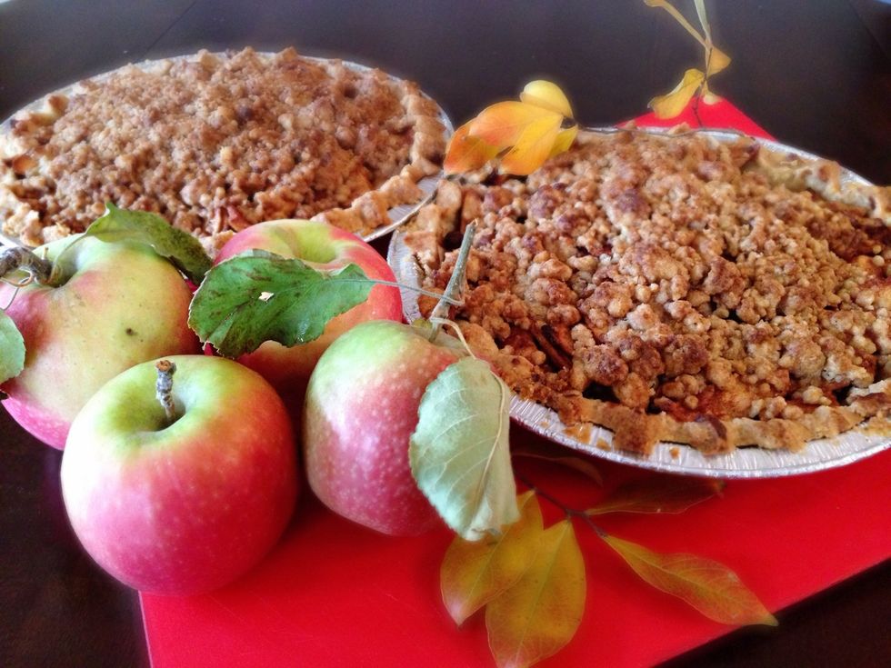 Step 6: fill with your favorite filling. I chose to make an apple pie with the apples we picked over the weekend. Add cinnamon and brown sugar to the remaining dough and crumble on top of pie filling.