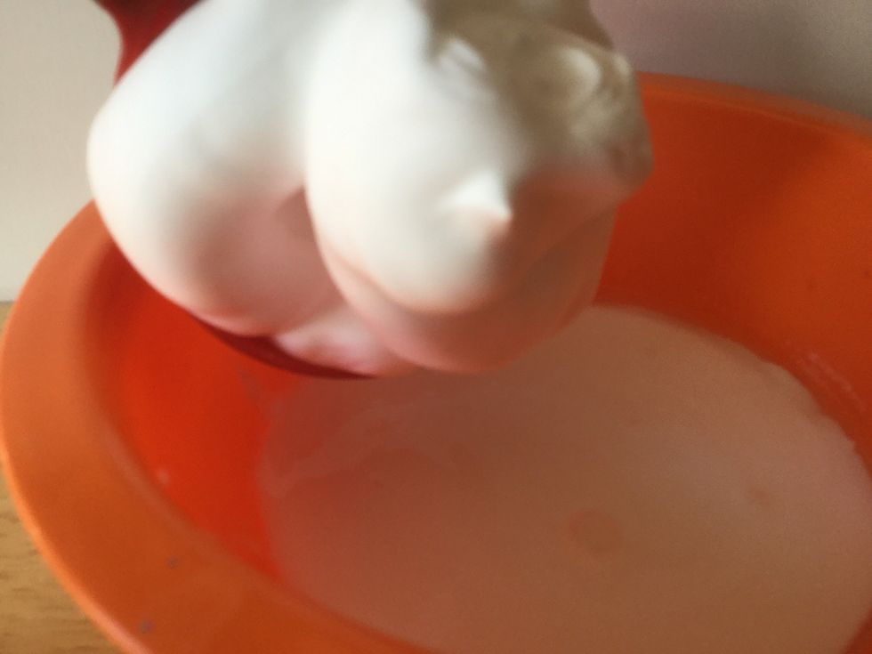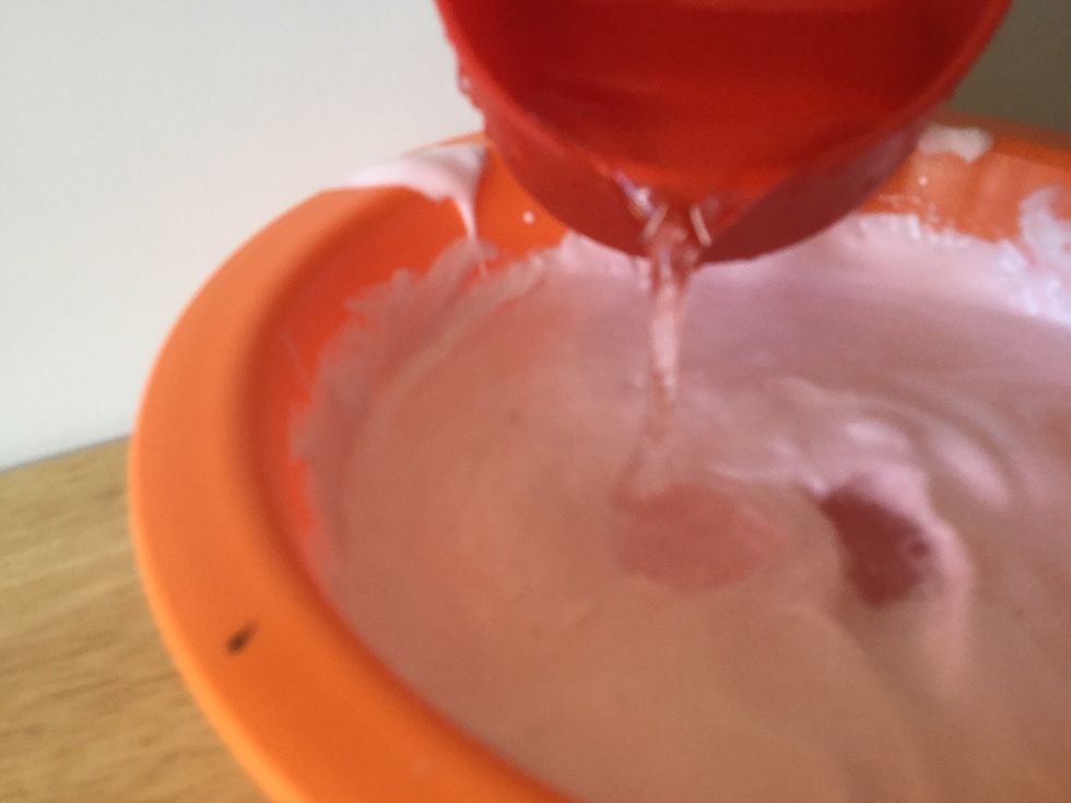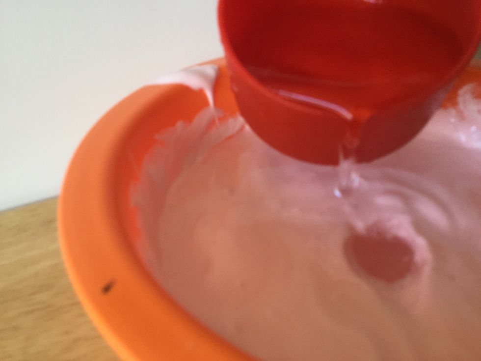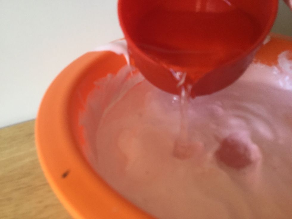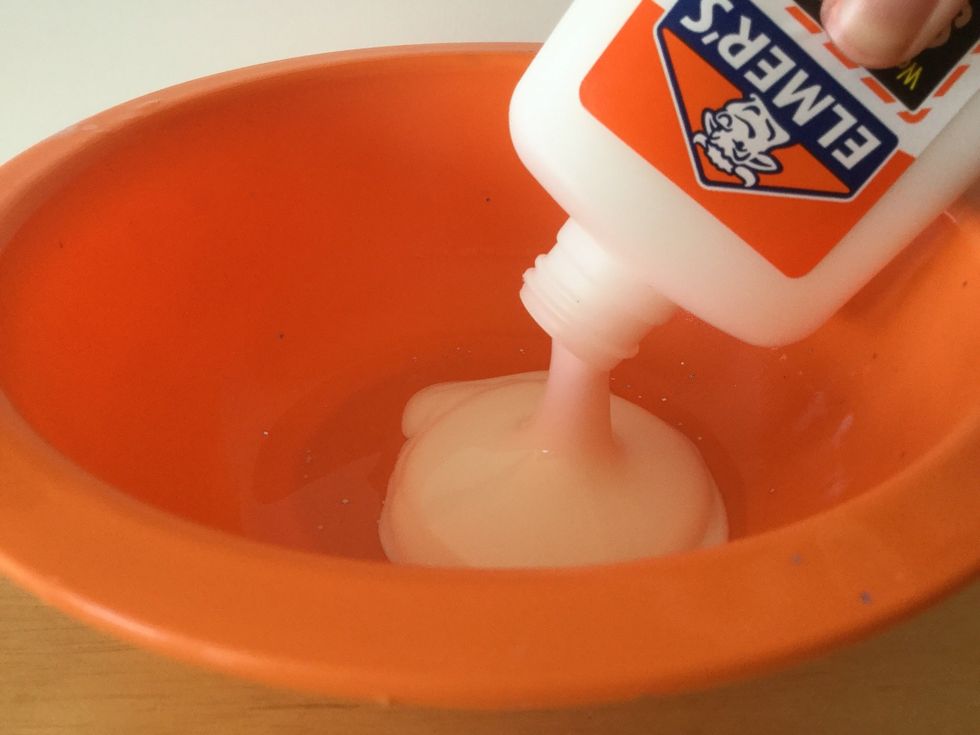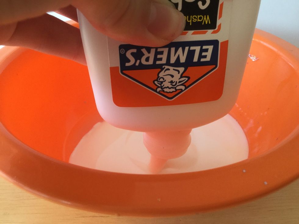 Now add your borax solution. Teaspoon of borax and a cup of warm water