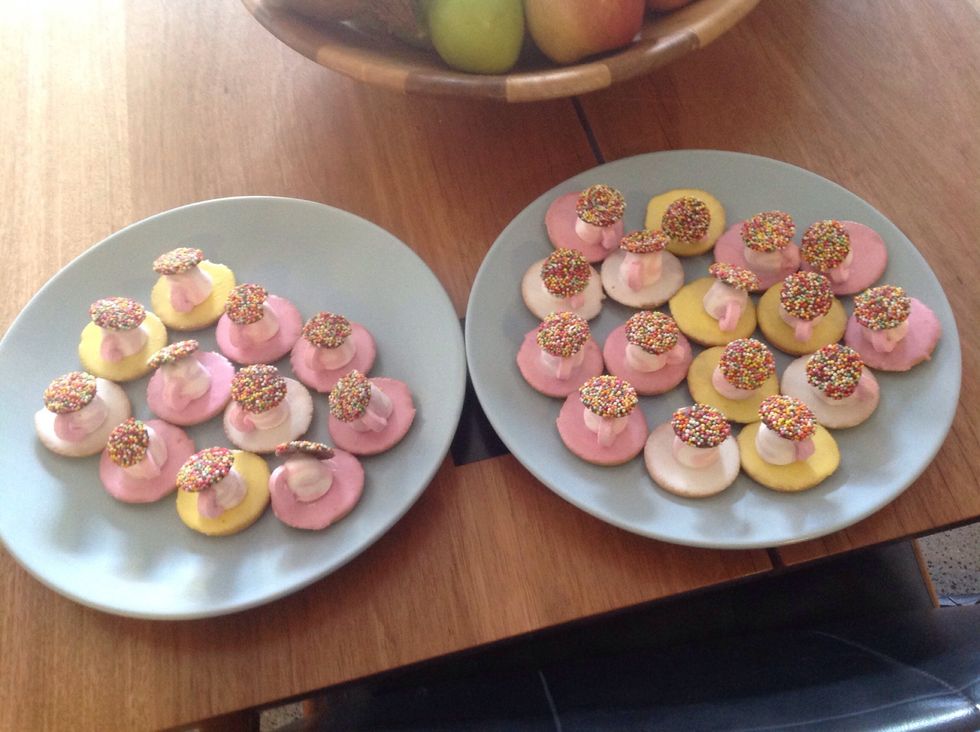 Spread a small bit of icing on the bottom of a marshmallow and stick it to a tic toc biscuit.