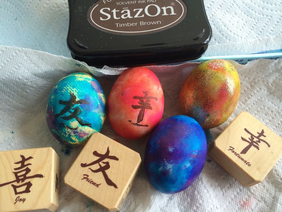 If you decide not to glitter, try stamping an image (softly) onto the egg. Stayzon is water proof!