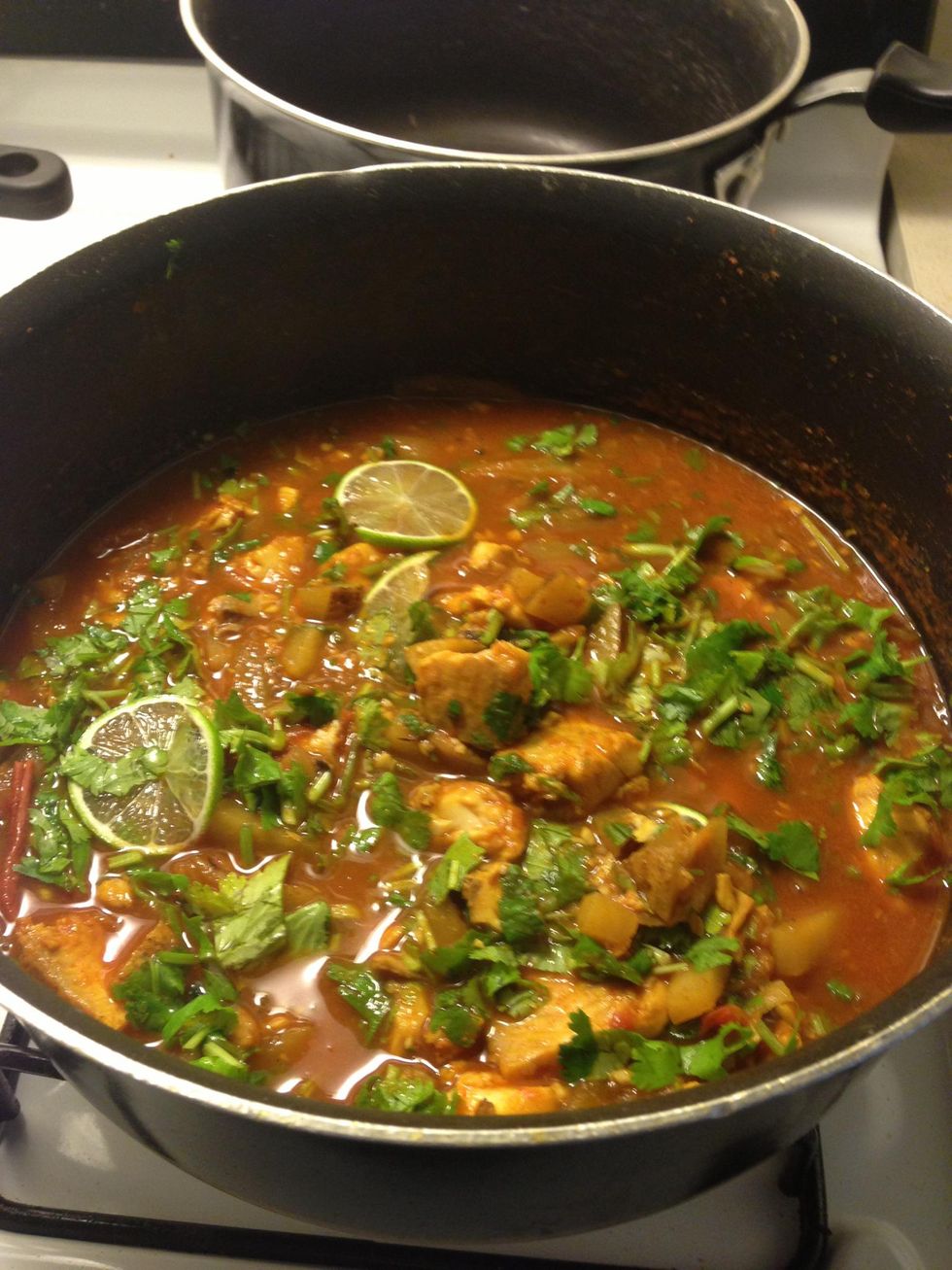 Add 1 oz of cilantro and thin slices of lime