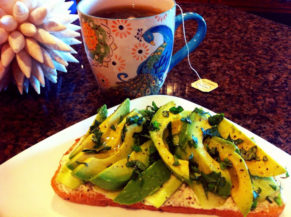 Then make a layer of avocado slices. Season it with salt + pepper.