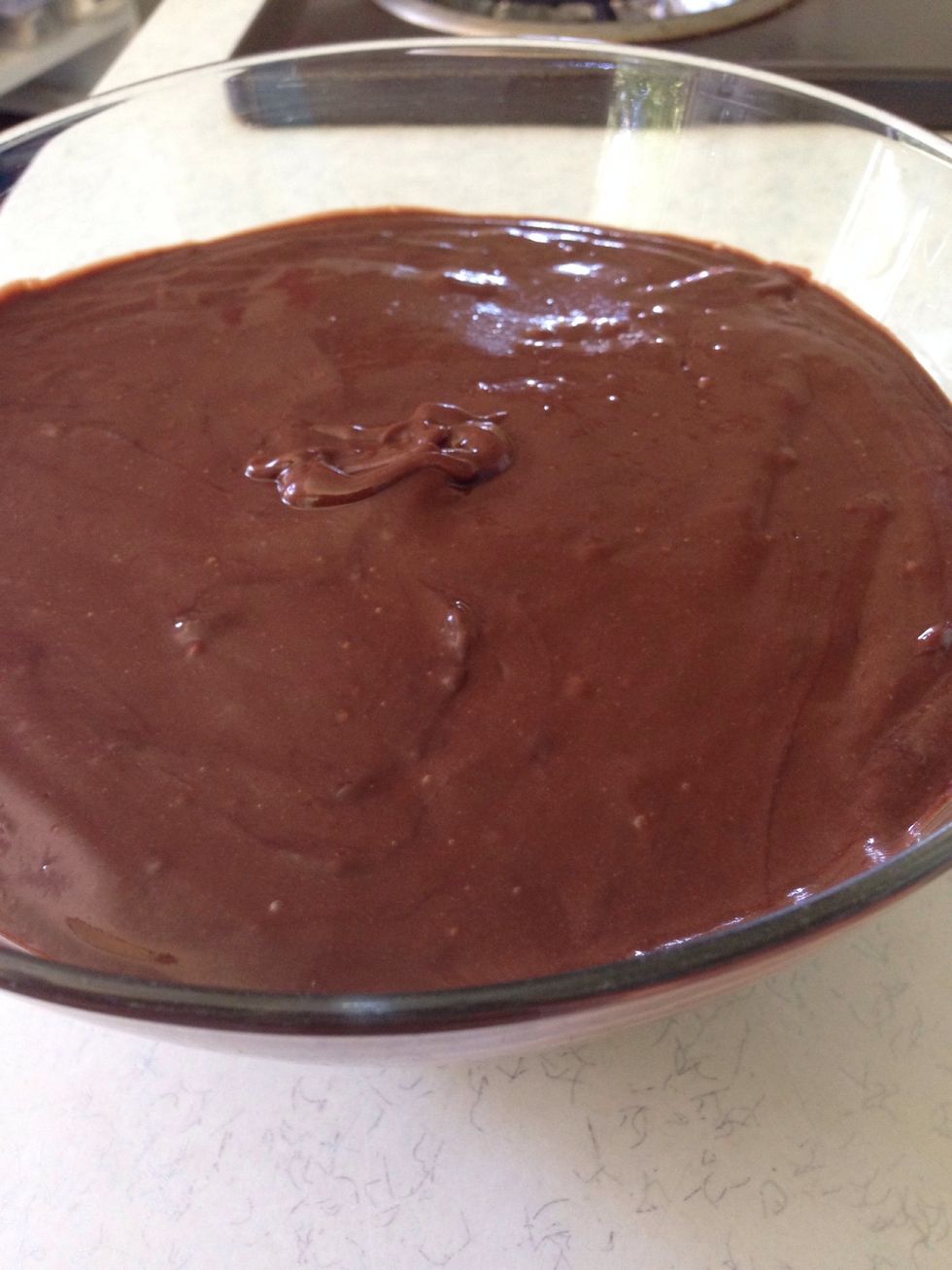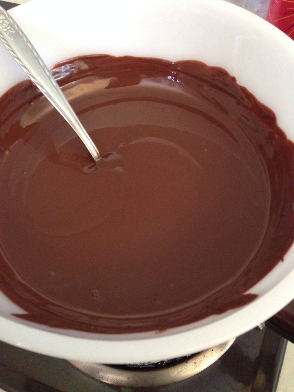 Put the bowl over a pan of very gently simmering water and let the chocolate melt until it's very smooth. Remove the bowl from the water and allow to cool.