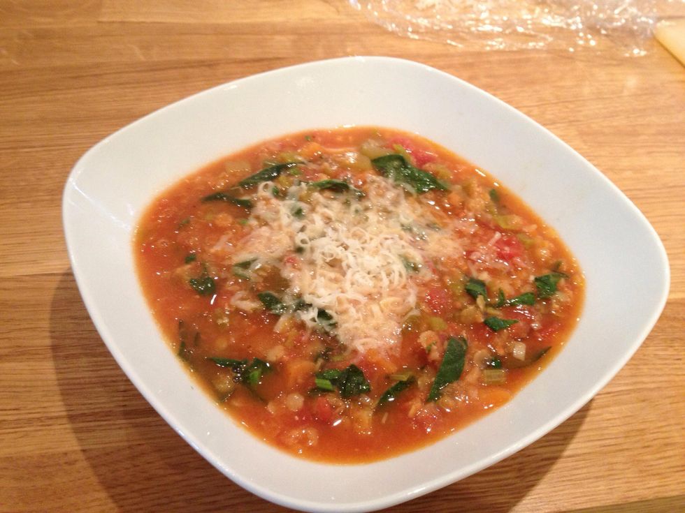 Once veg is soft add the spinach to the soup and put the lid on to allow it to wilt. This will take about 5 mins. I also stir in about a tablespoon of balsamic vinegar (optional)