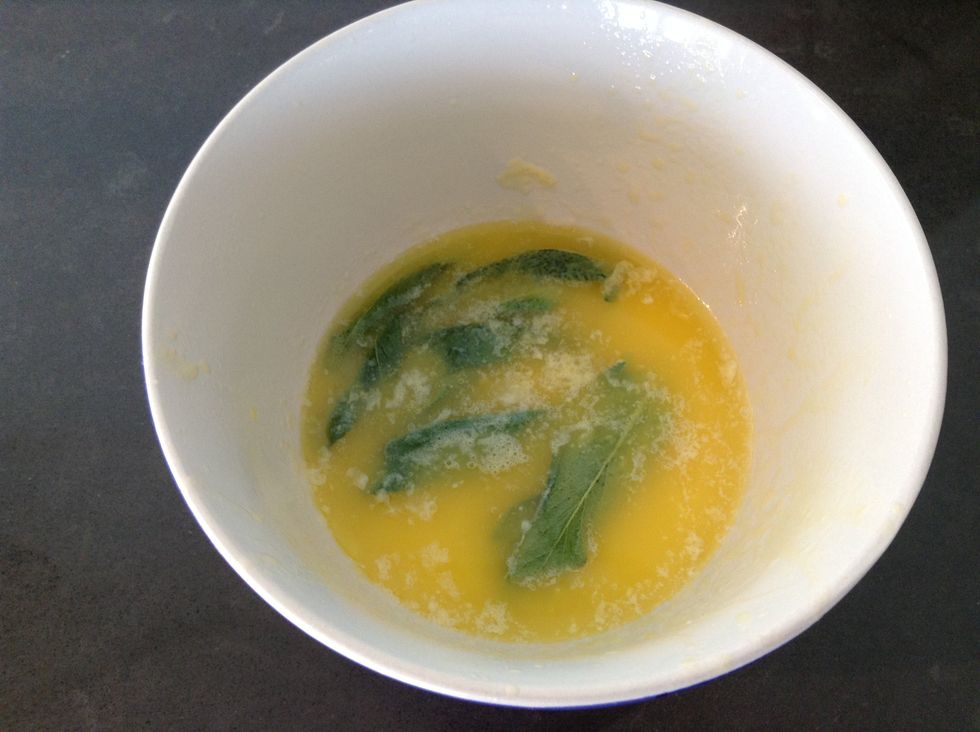 Melt butter with sage leaves in a microwave (or in a pan).
