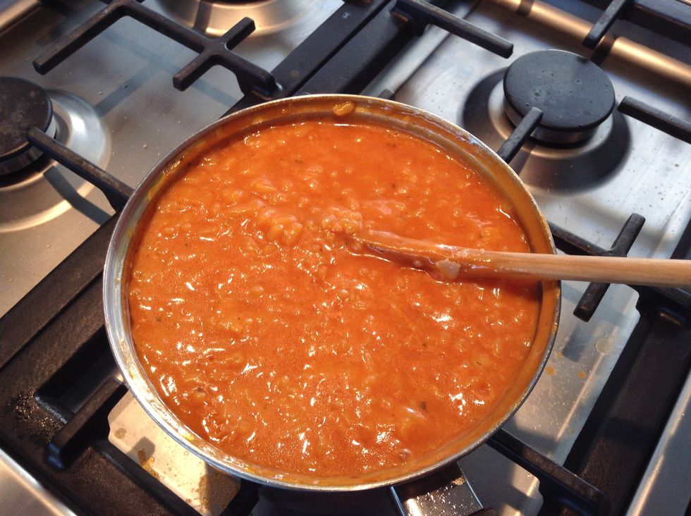 Add the tomato paste to the rice.