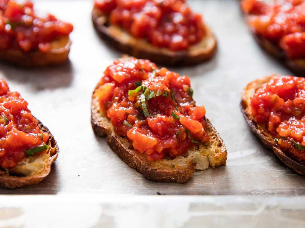 Place canned tomatoes with olive oil and salt at 300 degree Fahrenheit. Chop fresh tomato and transfer all of them into a bowl
