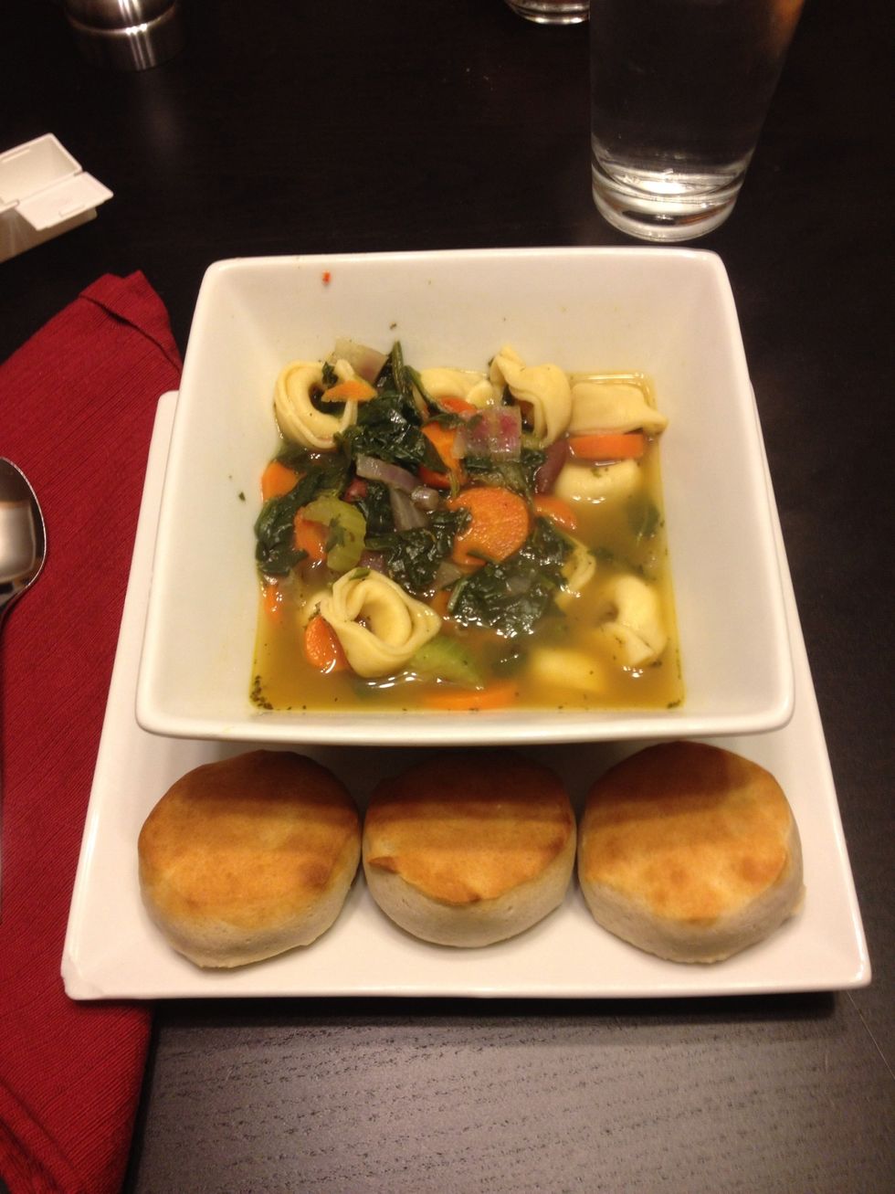 Total soup cal: 270 3 biscuits: 150 Total: 420