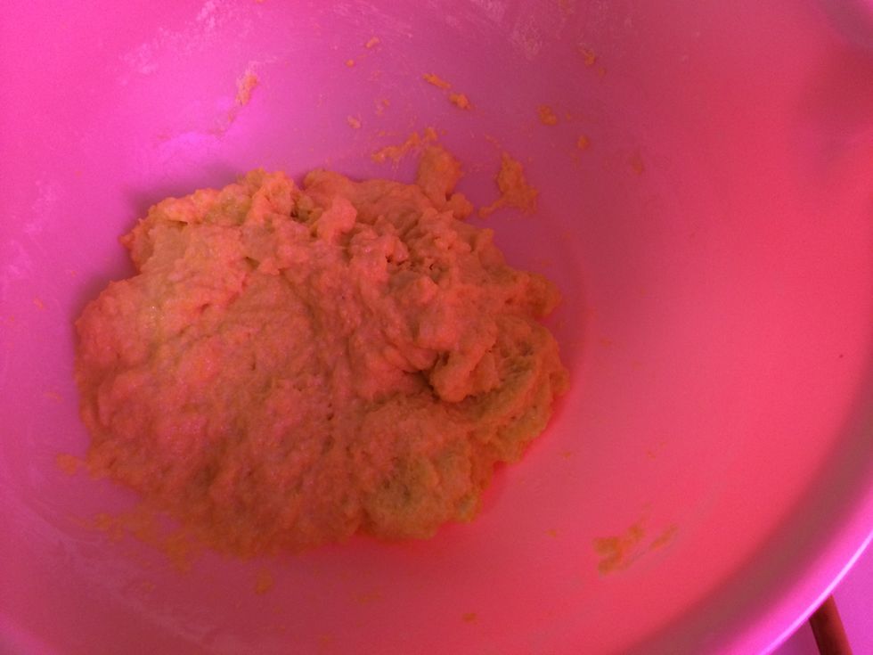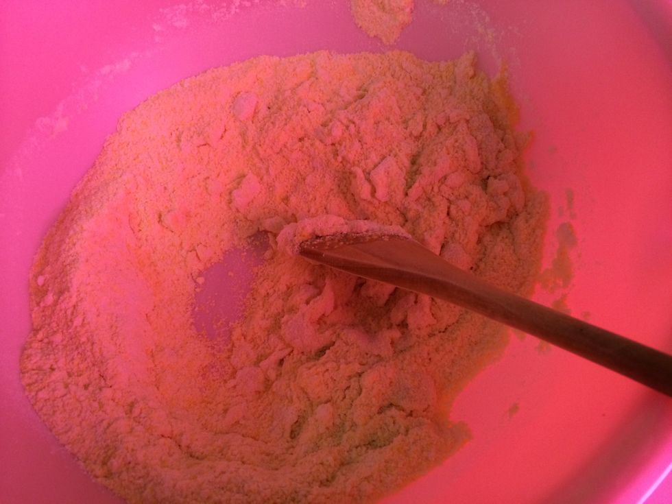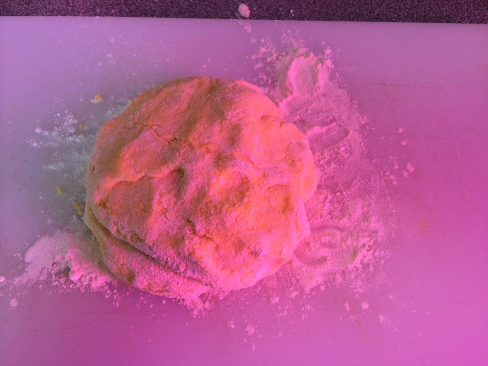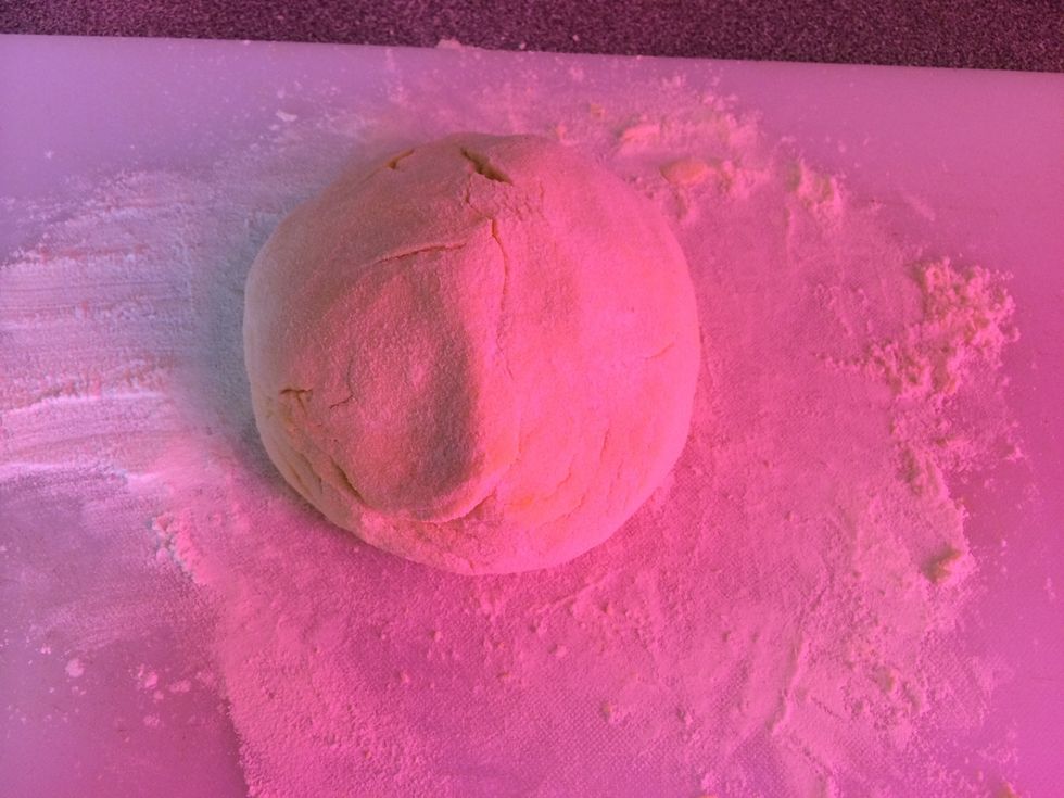 Sprinkle some flour over the pieces and roll the pieces into a ball.