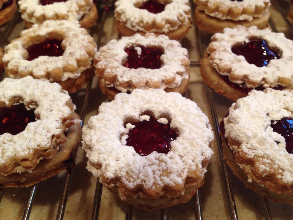 Linzer torte's are the worlds oldest cake. Filled with pungent raspberry jam and decorated with a lattice top. My dad taught me to make Austrian jam cookies which are commonly called linger tarts.