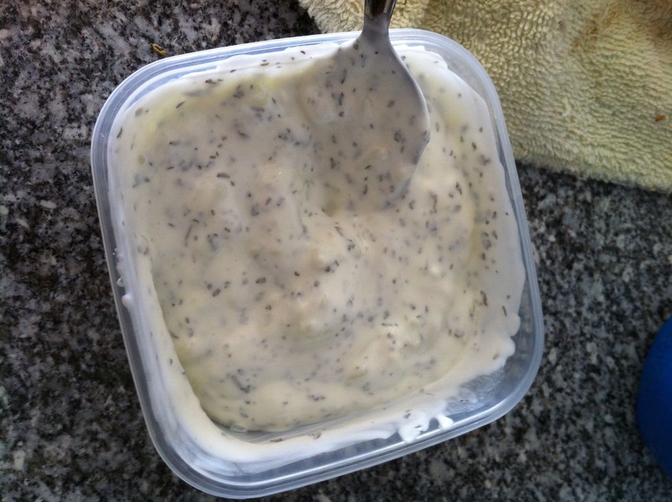Stir well and add a pinch of salt, stir it again and let sit on the fridge for 1 hour, serve it cold with meat or salad :)