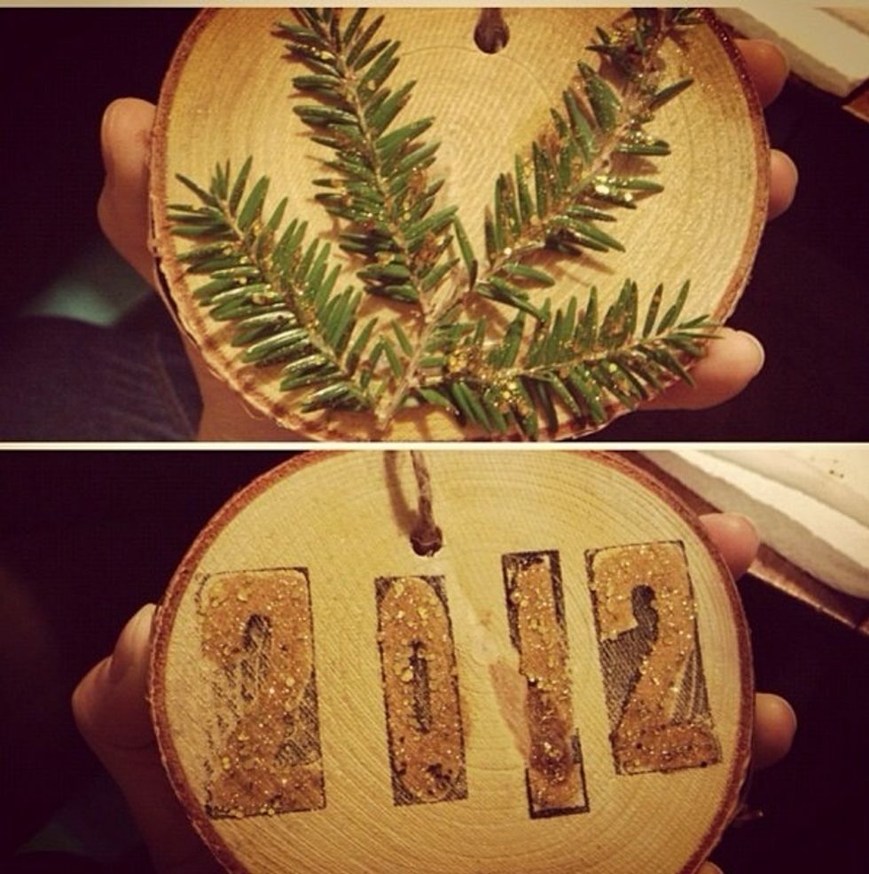Tie a piece of twine through each hole to create a loop to hang your ornament.