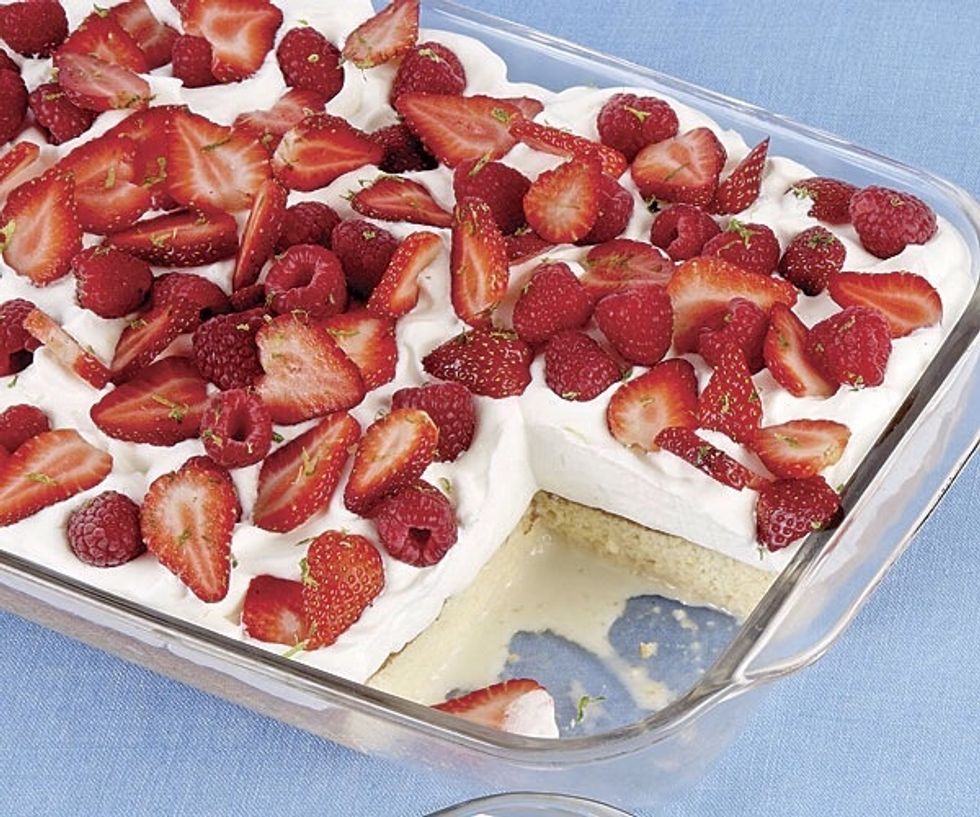 Decore el pastel con frutas de su preferencia.