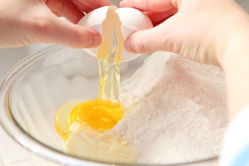 Primero, siga las instruciones que estan localizadas atras de la caja de la mezcla de pastel. Pero cuando haces el pastel, sustituya el agua por leche y el aceite por mantequilla