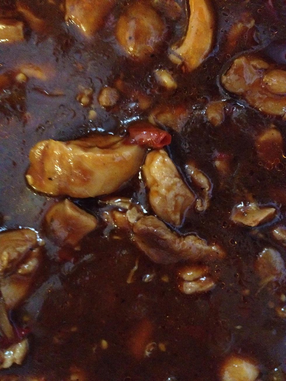 Add brown sugar, soy sauce, & ketchup... Mix well. Continue to simmer on a low heat for another 15-20 minutes.