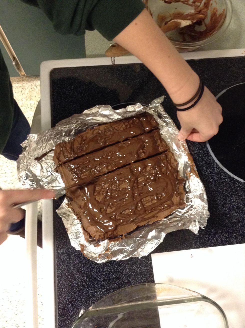Get an 8x8 and line it with tin foil. Press foil down firmly into the dish and spray with non-stick cooking spray.