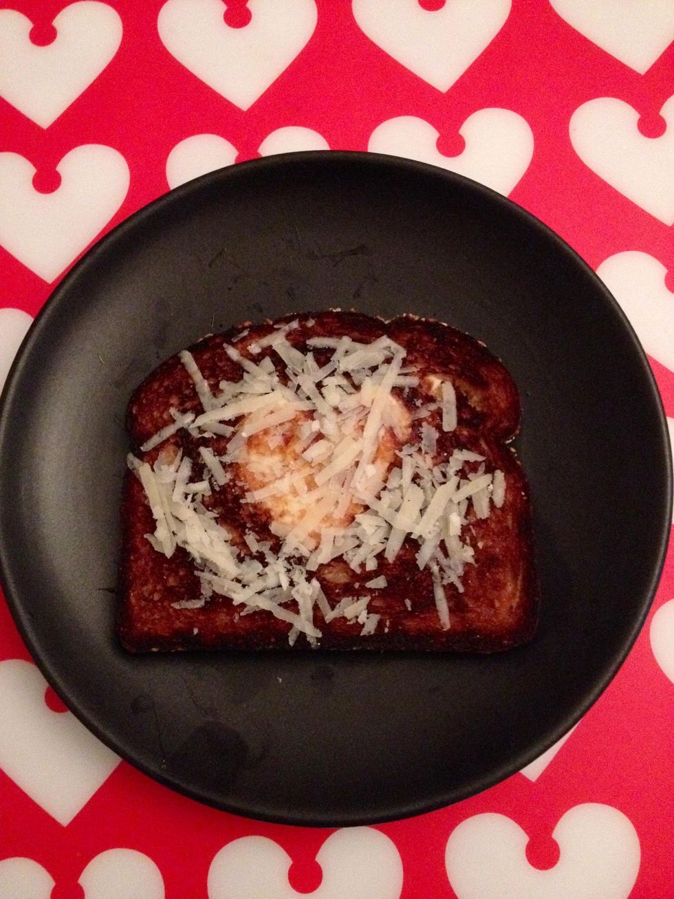 Crack an egg into the center of your bread. Cook it for a minute or two depending on how soft you like your eggs.