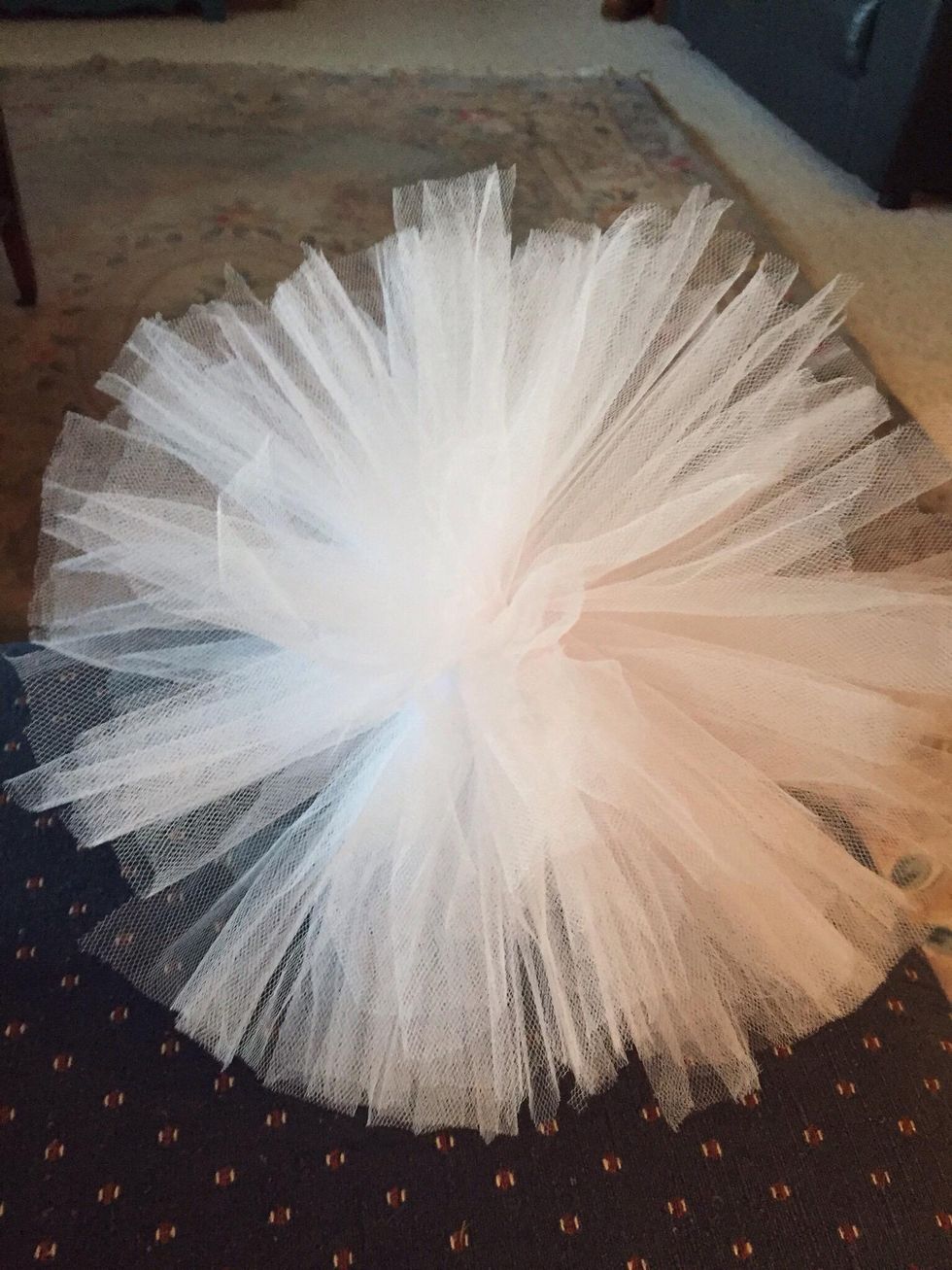 Wrap tulle around book or magazine. Pick size you would like...magazine vertically will be a larger Pom Pom.