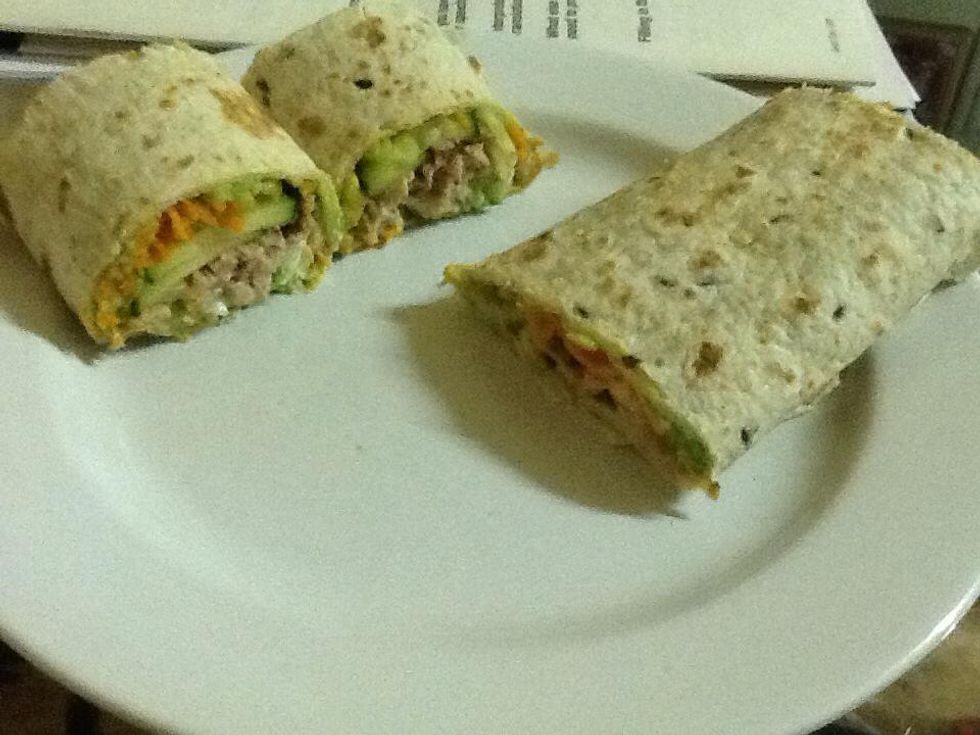 This is a really healthy lunch and is really easy to make. It has a total of 12g of fat which isn't thatmuch. The tuna contains lots of protein and the carrot and lettuce contains lots of vitamins.