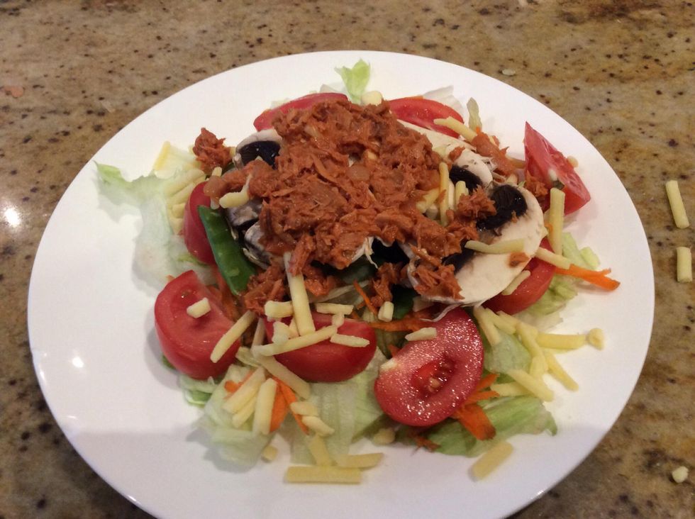 Step 7: Next add some sliced cheese to the salad (Optional)Step 8: And now sprinkle some tuna on top and you have tuna saladRemember to keep a balanced diet and eat junk food in moderation