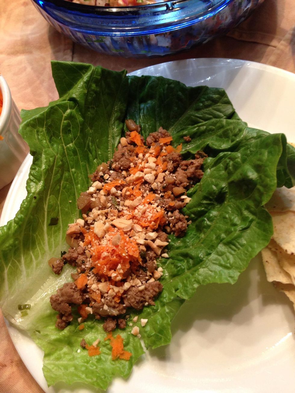 ... And top with carrots and peanuts/cashews! Eat it like a taco or fold it up like a lettuce burrito. Enjoy!! 😊