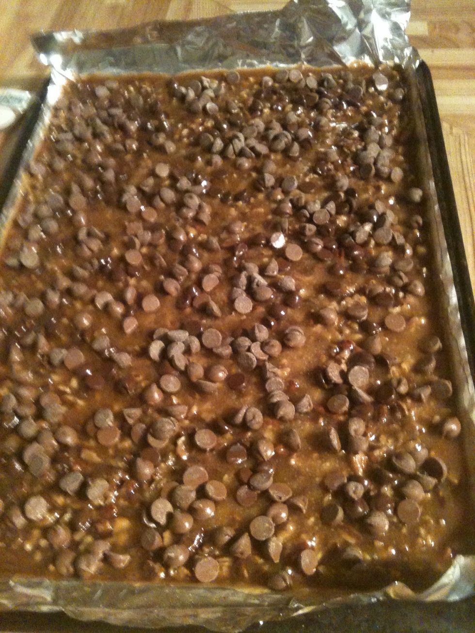 Ready to come out! Sprinkle chocolate chips as soon as pan is removed from oven.