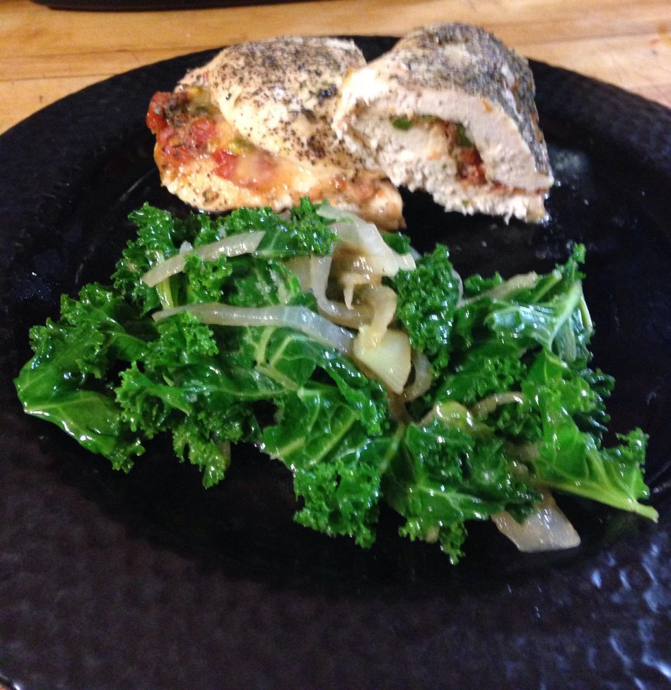 Finished product . I fried some kale and onions as a side dish. Yum!!! Enjoy Everyone !!