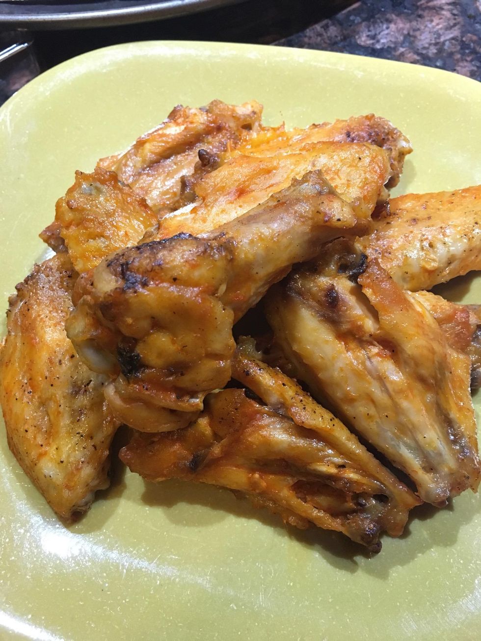 1/4 tsp of Iodized Salt - 1/4 tsp of Black Pepper - Olive Oil (Enough to drizzle chicken) - Franks Hot Sauce - Original Syrup - Original Salted Spread Butter - Chicken Wings (About a Family serving)