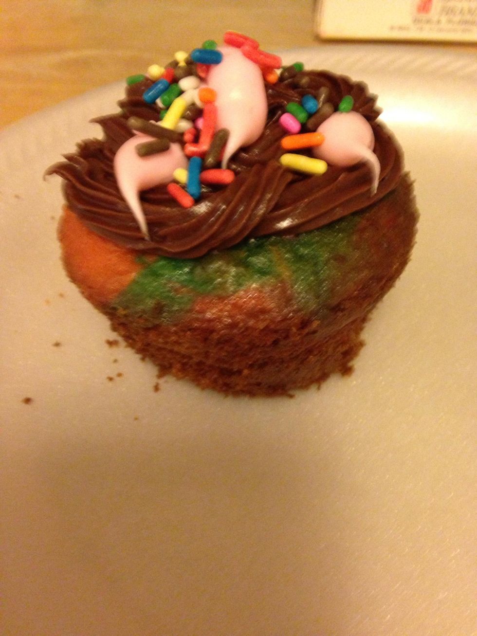 Put one medium size scoop of each color in one cupcake hole thingy .