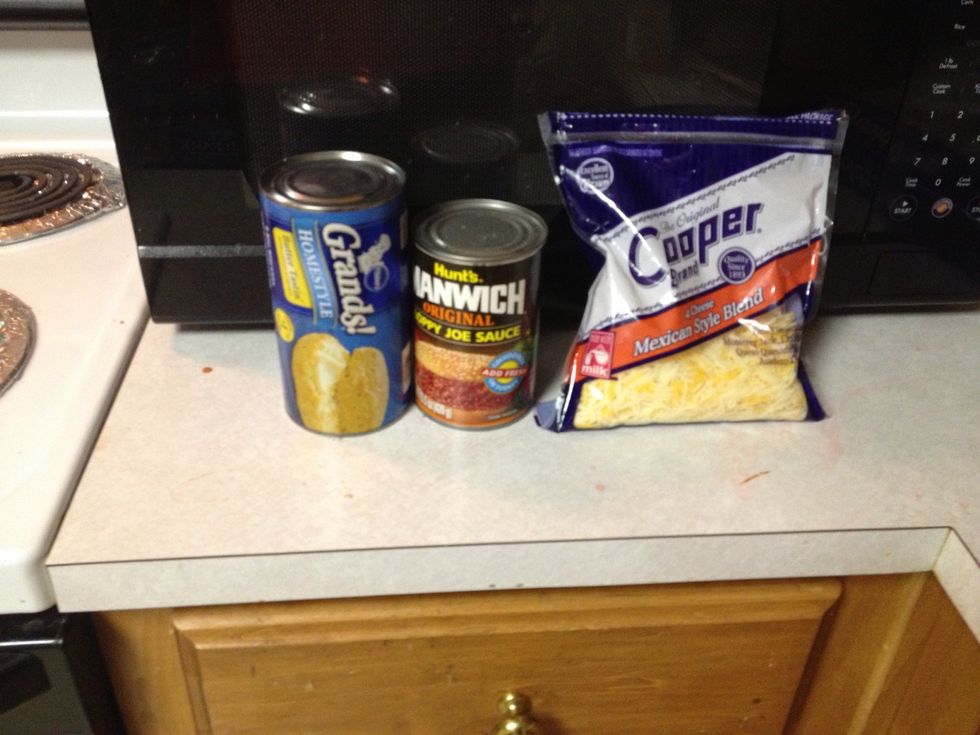 Ground your meat. Drain the grease and mix sloppy joe. Preheat oven to 375