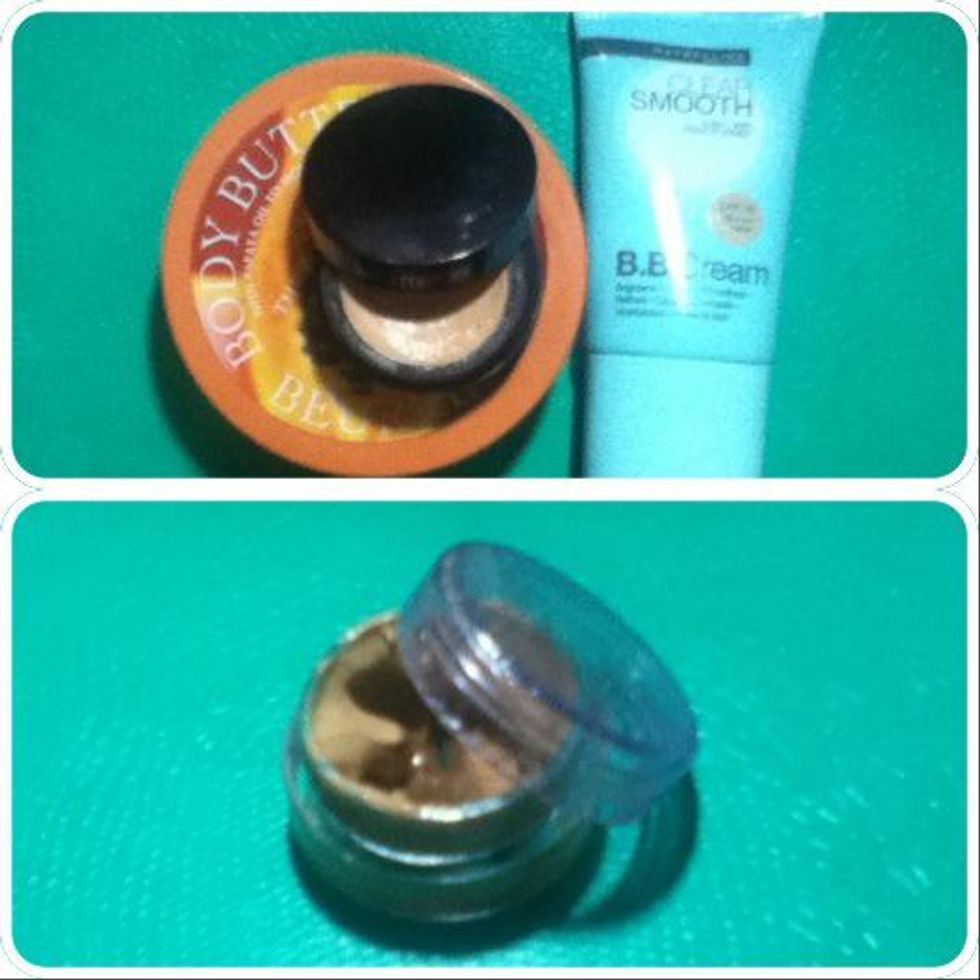 Gather materials. mix the body butter to your concealer and/or liquid foundation. 1:1 ratio OR if you decide to use both concealer and liquid foundation it will then be 2 (body butter) : 1 of each