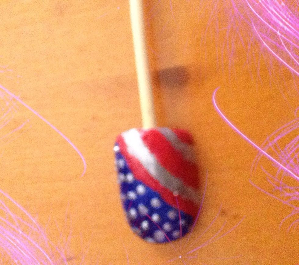 Now, after that you need to start dotting. The little dots will be the stars!! To do this, best results from a nail pen or dotting tool ( small dots ). But if you don't have those, use a toothpick.
