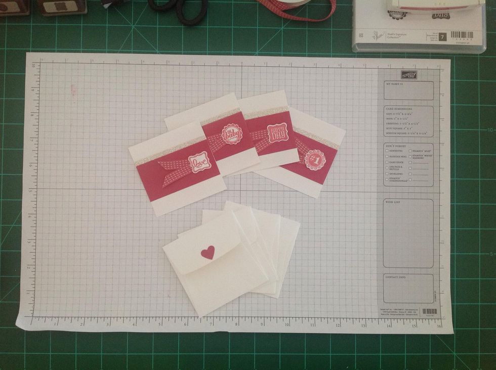 3x3 Valentines and envelopes using Stampin' Up! Products from the 2013 Spring Catalog and 2013 Sale-a-Bration Catalog