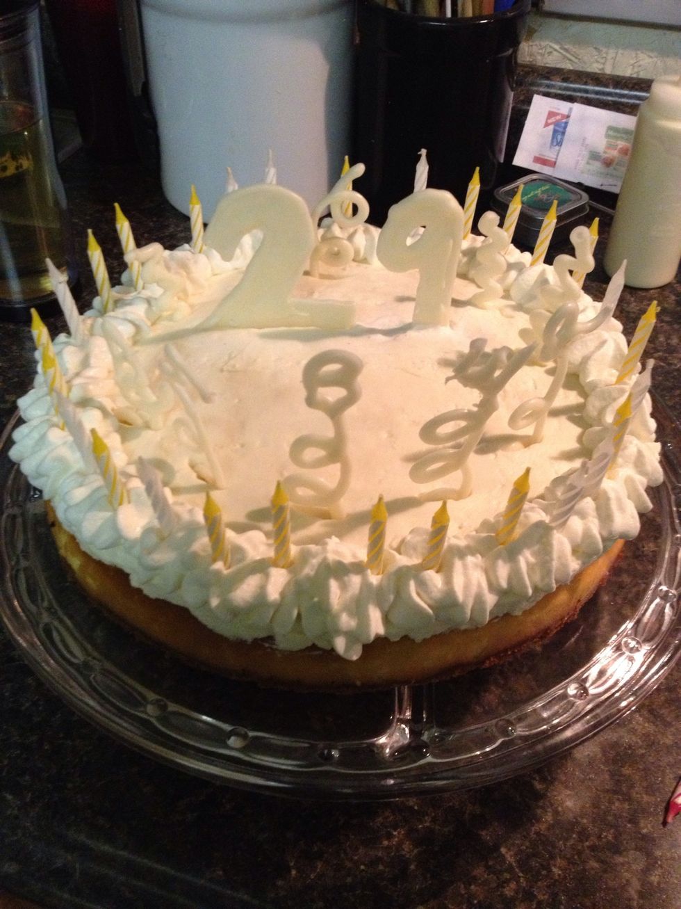 Please see the supplies tab for the ingredients. This cheesecake involves a crust, cheesecake layer, white chocolate mousse, and whipped cream topping. Assembly can take a few hours.