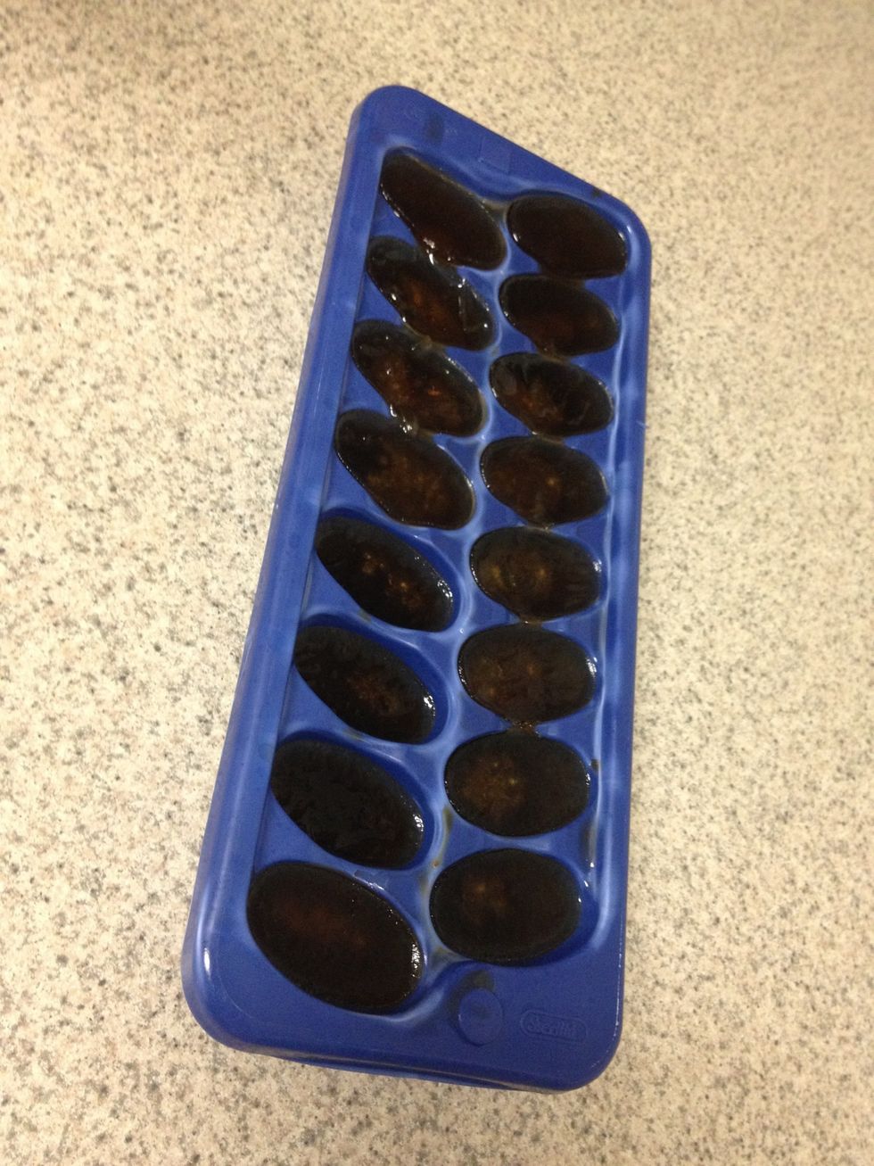 Brew desired flavor of coffee. Allow to cool and pour into ice cube tray. Freeze ice cube tray.