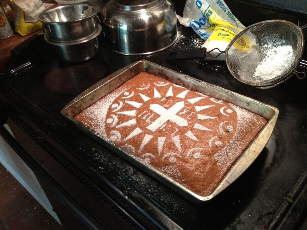 Sprinkle on some powdered sugar. (On top of a stencil if you have one)