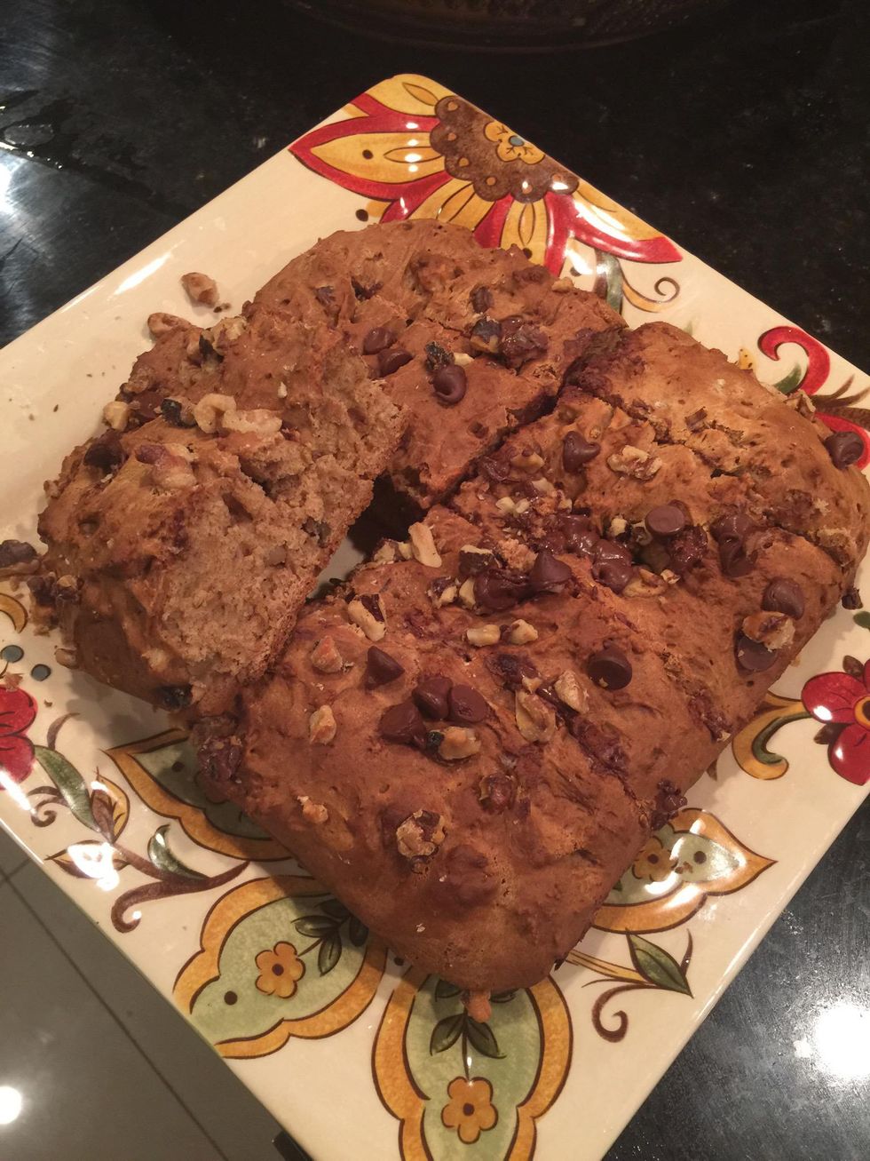 Add any toppings you'd like, I added chocolate chips and the remaining 1/2 cup of walnuts.