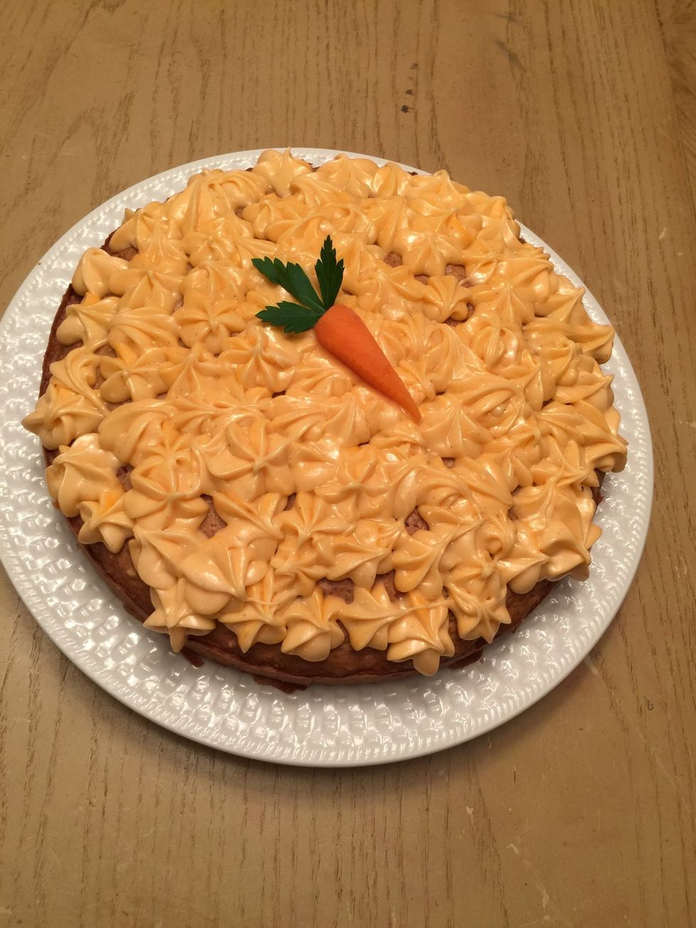 To the mixing bowl add shredded carrots, nutmeg and cinnamon.