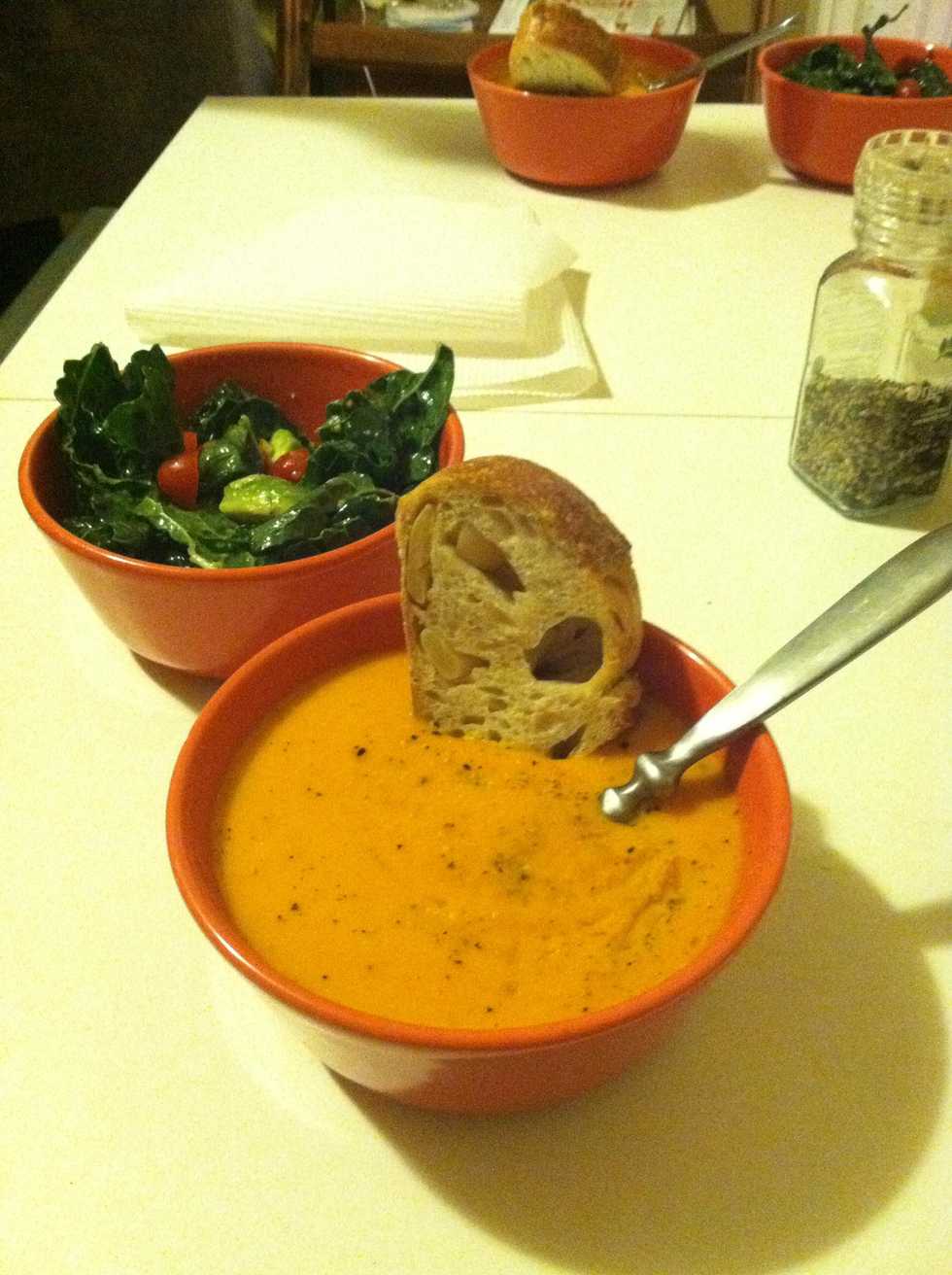 Using a blender, blend soup in batches until smooth. (You can also use an emulsion blender in the pot and never have to move the soup… if you’re into that sort of convenience.)