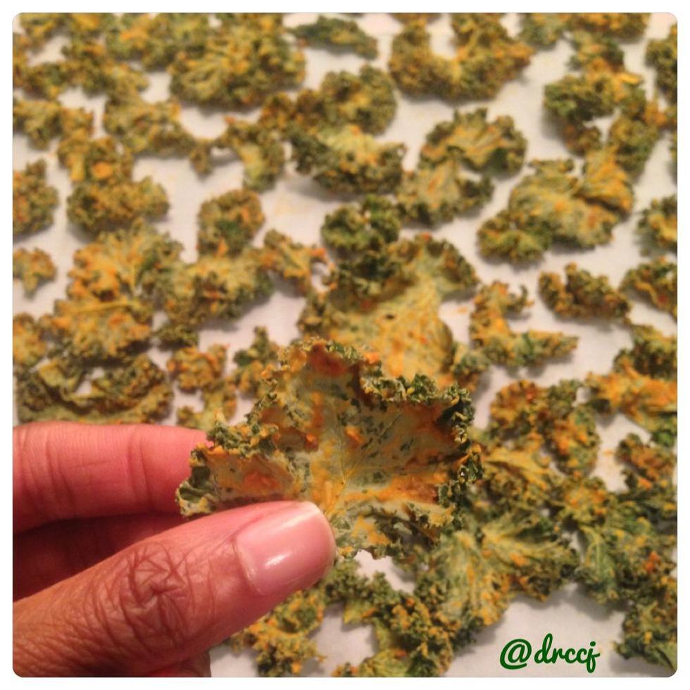 This is an upgrade on the typical oil and salt homemade kale chips. Its a slightly altered version of a recipe found on Instagram by Britt Leeb.