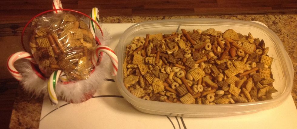 Maybe the red icicles are a bit much, but now I want to make more chex mix and do a different theme for little treat buckets.
